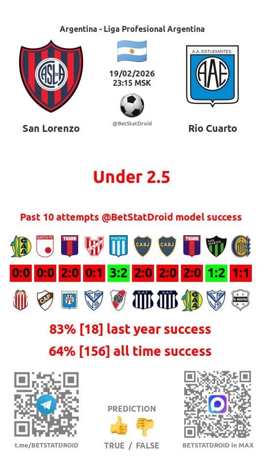 ✔ Сан-Лоренсо забивает меньше 2,5 голов в 16 матчах