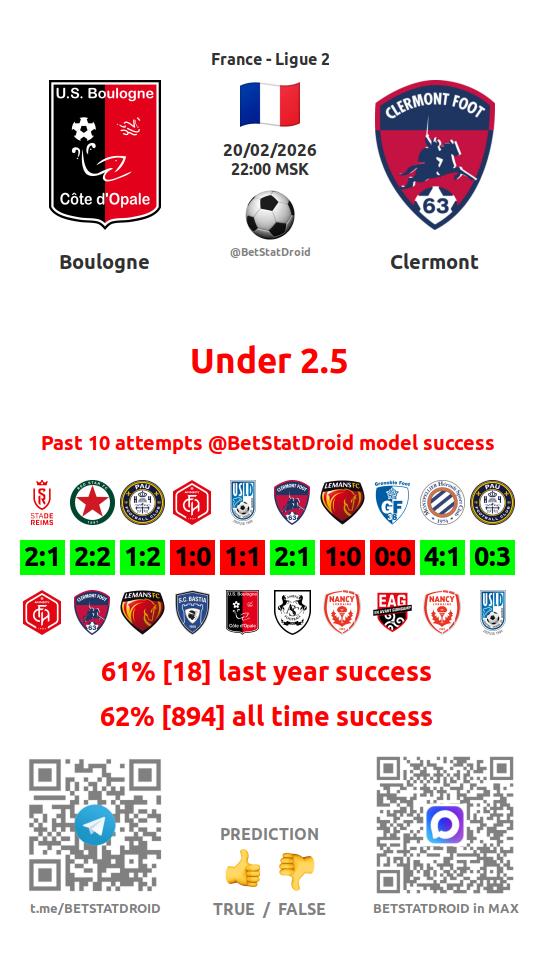 ✔ Булонь забивает меньше 2,5 голов в 8 матчах