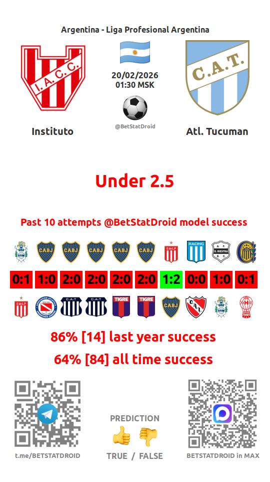 ✔ Институто забивает меньше 2,5 голов в 25 матчах
