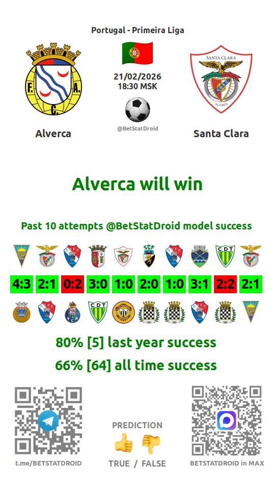 ✔ Алверка забивает меньше 2,5 голов в 15 матчах