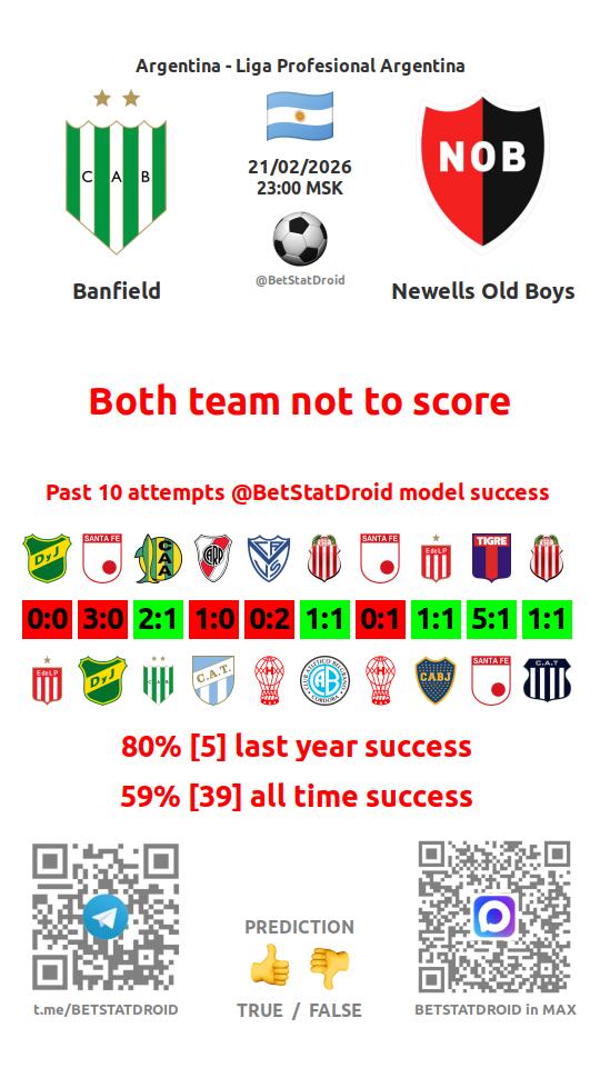 ✔ Ньюэллс Олд Бойз забивает меньше 2,5 голов в 38 матчах