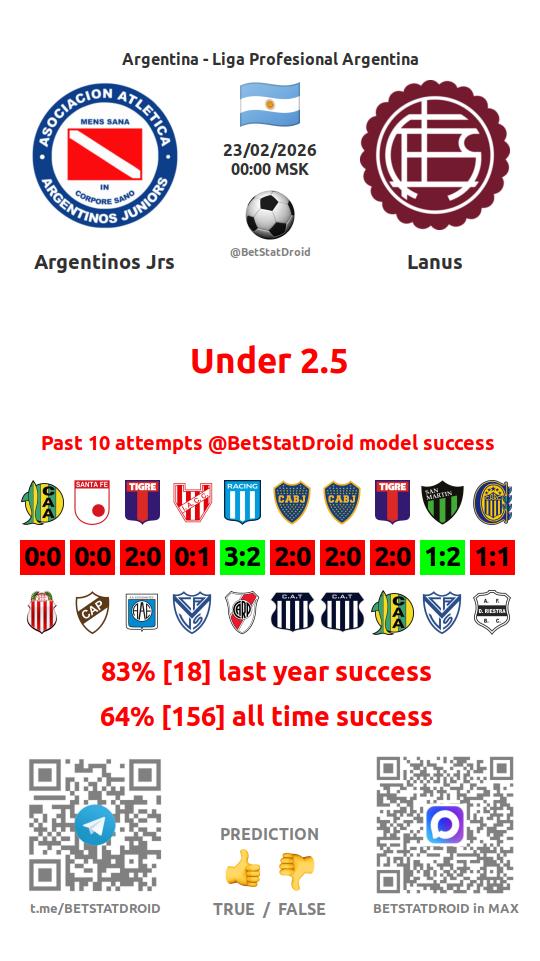 ✔ Архентинос Хуниорс пропускает меньше 2,5 голов в 59 матчах