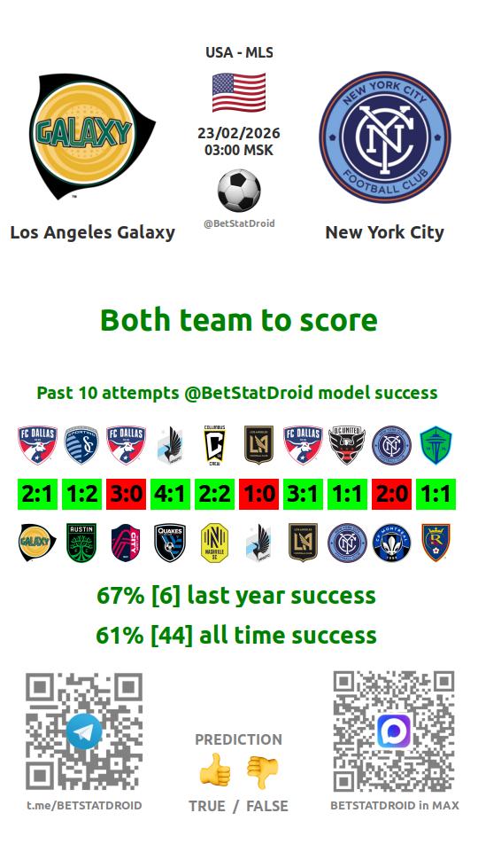 ✔ Лос-Анджелес Гэлакси забивает больше 1,5 голов в 5 матчах