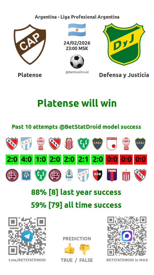 ✔ Платенсе забивает меньше 2,5 голов в 62 матчах