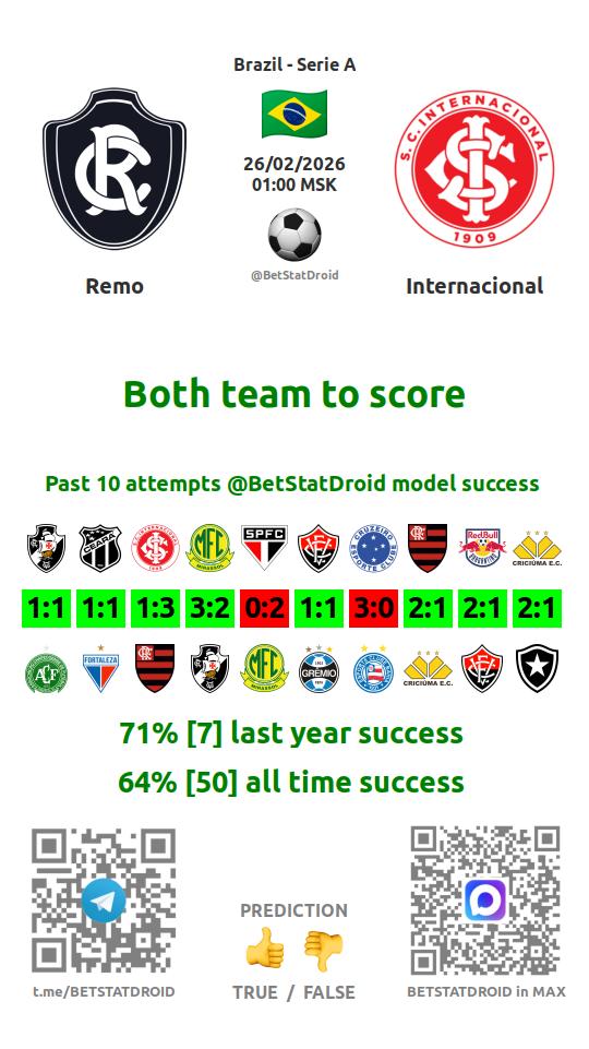 ✔ Интернасьонал забивает меньше 2,5 голов в 12 матчах