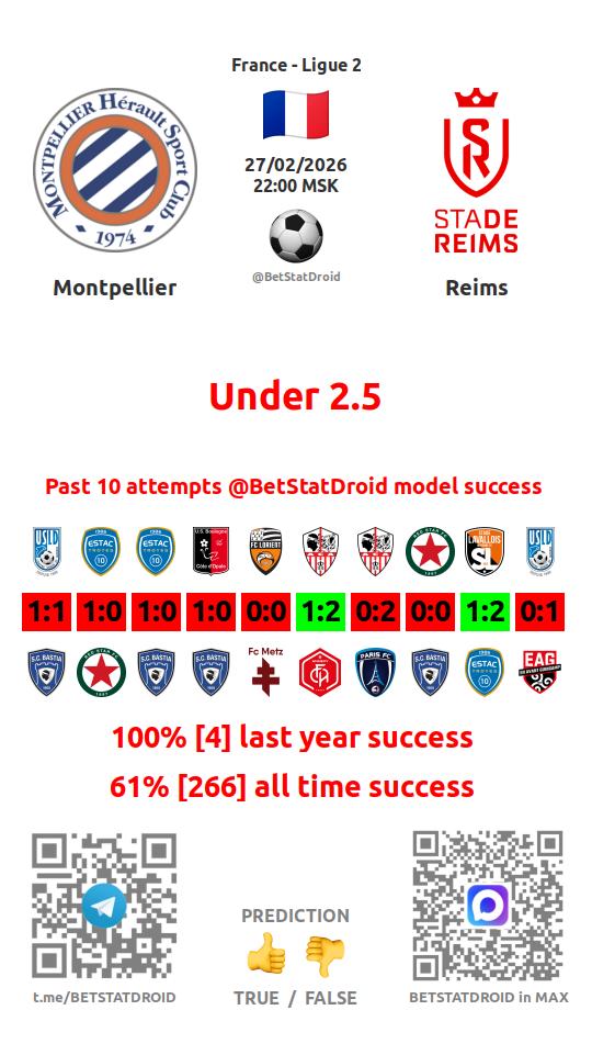 ✔ Реймс пропускает меньше 2,5 голов в 15 матчах