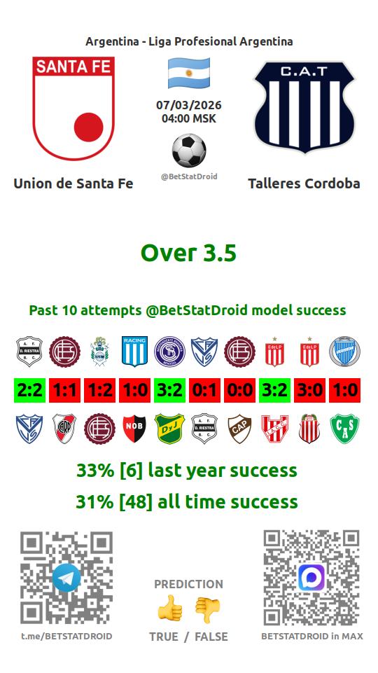 ✔ Унион Санта-Фе забивает меньше 2,5 голов в 8 матчах