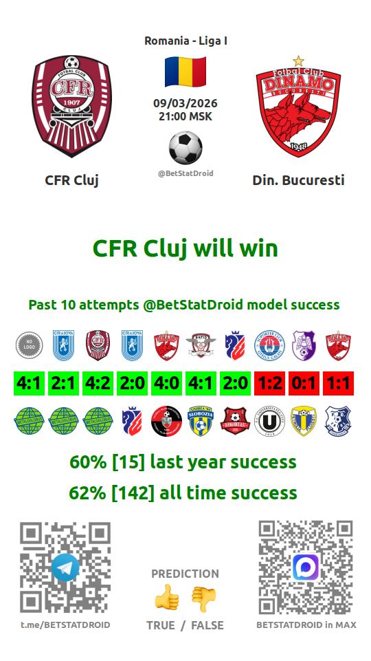 ✔ Динамо Бухарест забивает меньше 2,5 голов в 8 матчах