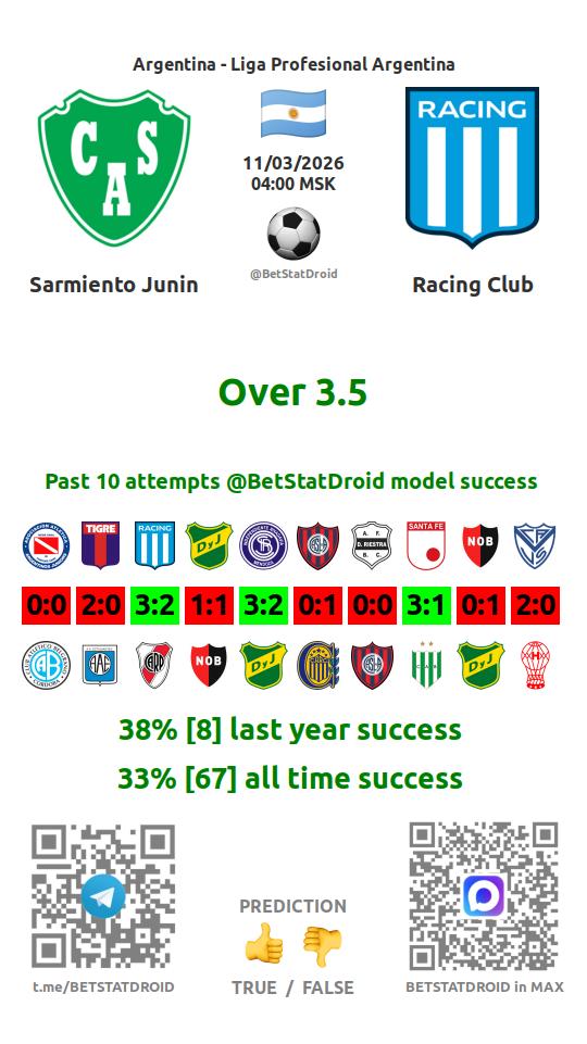 ✔ Сармьенто забивает меньше 2,5 голов в 36 матчах