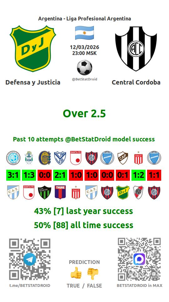 ✔ Дефенса и Хустисия забивает меньше 2,5 голов в 11 матчах