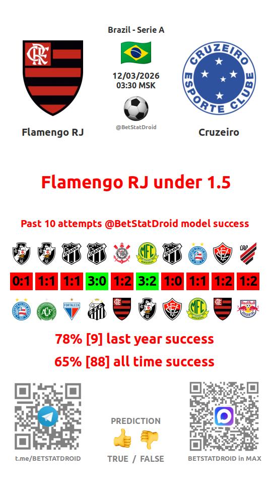 ✔ Фламенго пропускает меньше 2,5 голов в 40 матчах