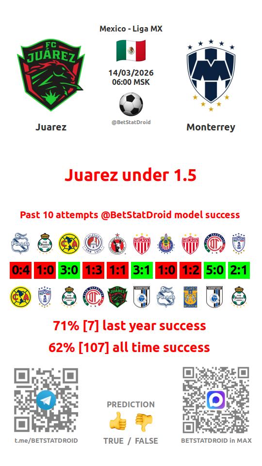 ✔ Хуарес забивает меньше 2,5 голов в 8 матчах