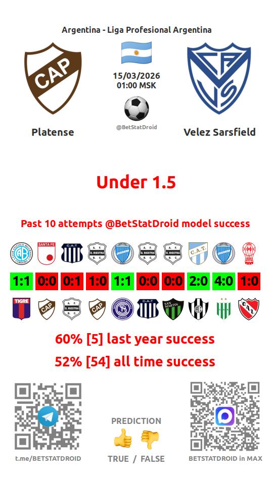 ✔ Платенсе забивает меньше 1,5 голов в 6 матчах