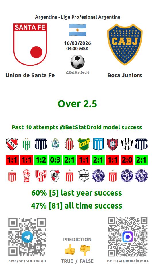 ✔ Унион Санта-Фе пропускает меньше 2,5 голов в 23 матчах