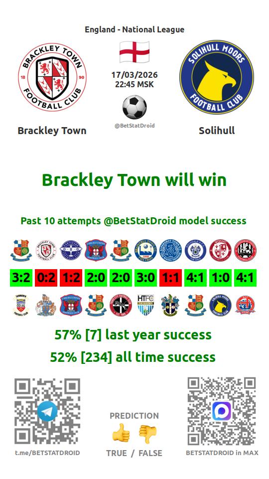 ✔ Брэкли Таун забивает меньше 2,5 голов в 18 матчах