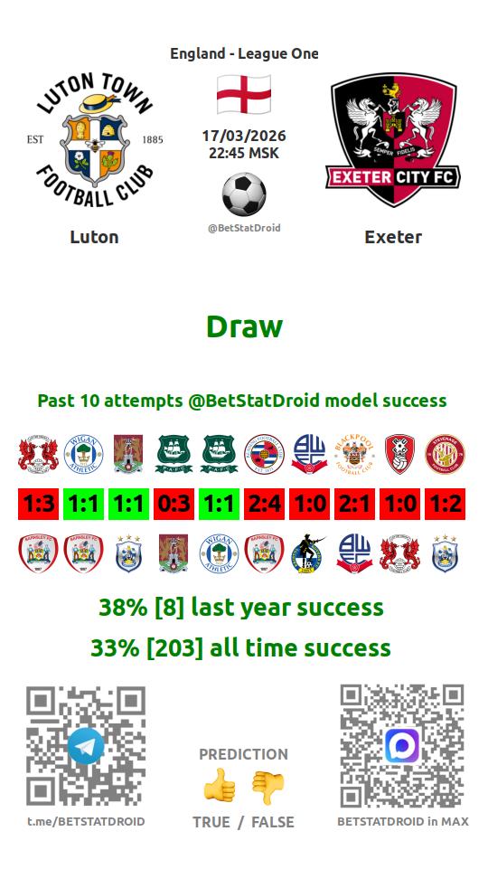 ✔ Эксетер забивает меньше 1,5 голов в 5 матчах