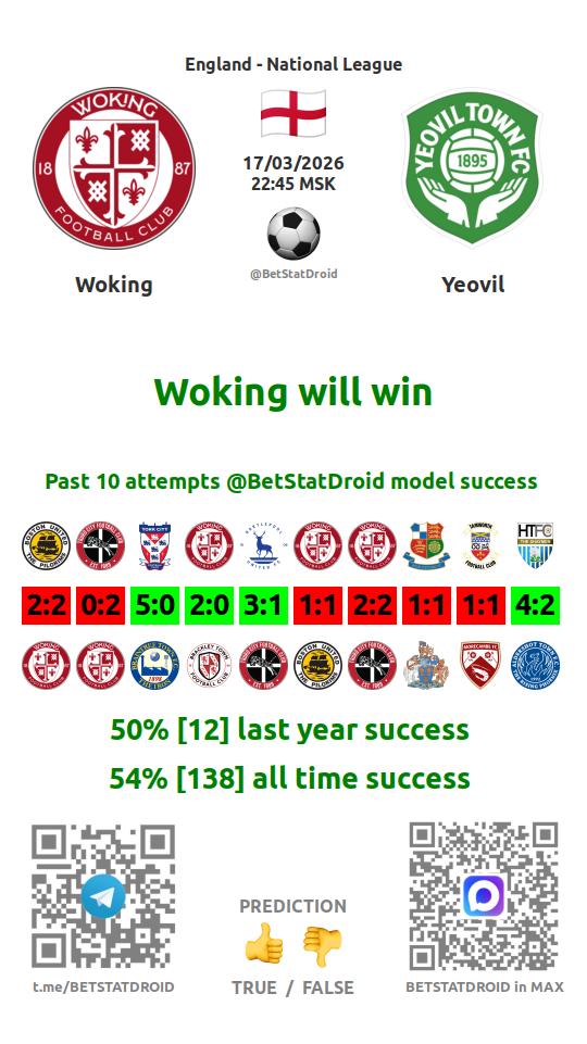 ✔ Уокинг пропускает меньше 2,5 голов в 34 матчах