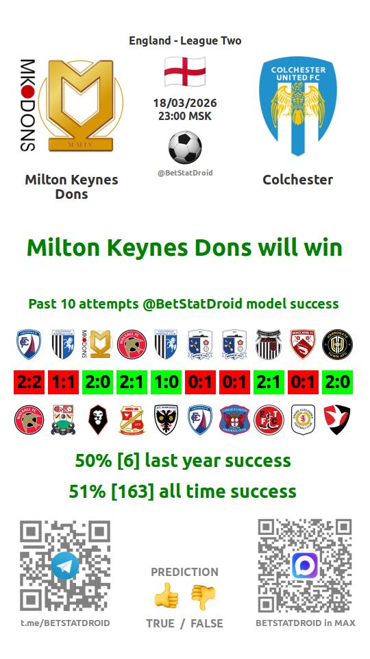 ✔ Колчестер забивает меньше 2,5 голов в 8 матчах