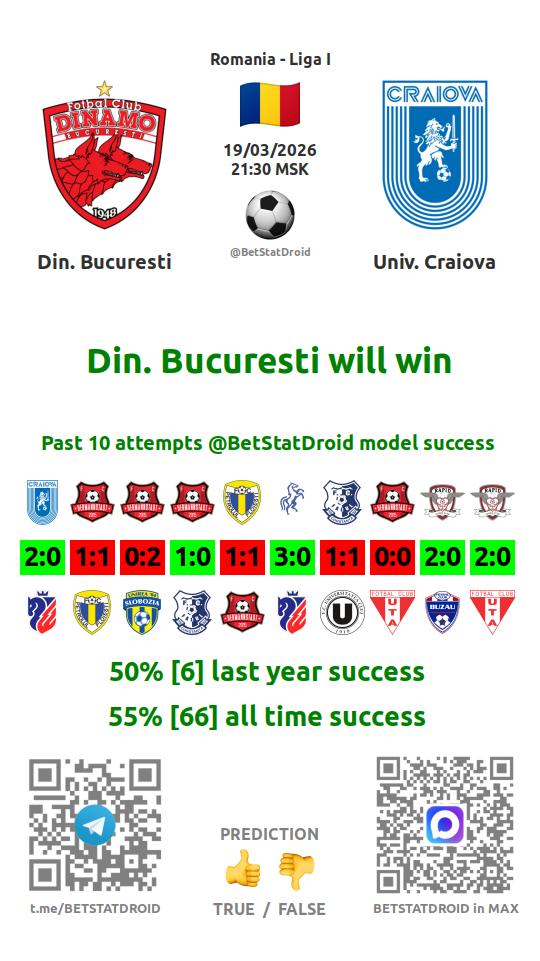 ✔ Динамо Бухарест забивает меньше 2,5 голов в 14 матчах