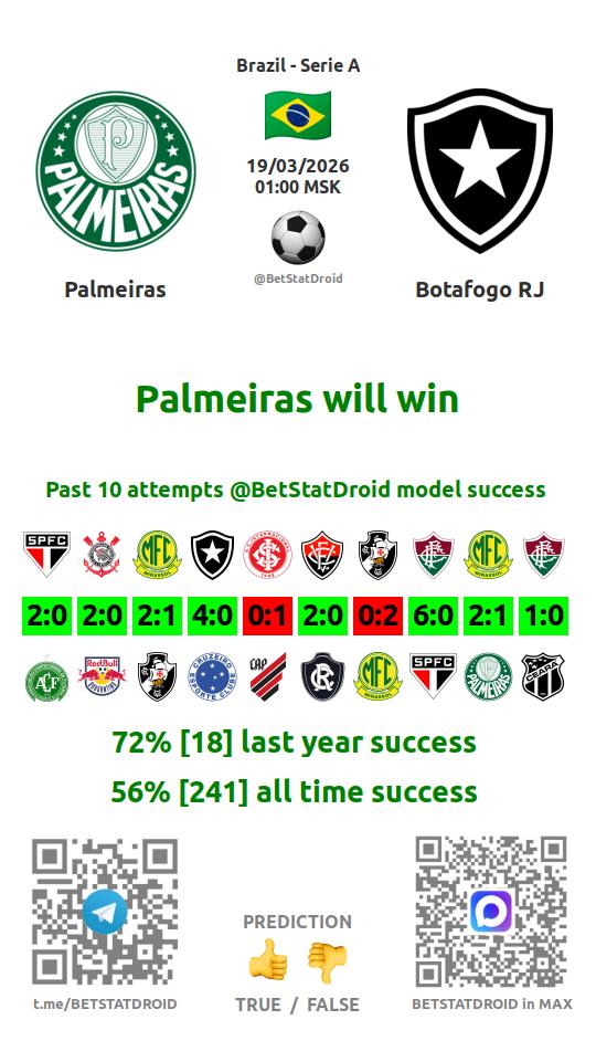 ✔ Палмейрас пропускает меньше 2,5 голов в 24 матчах