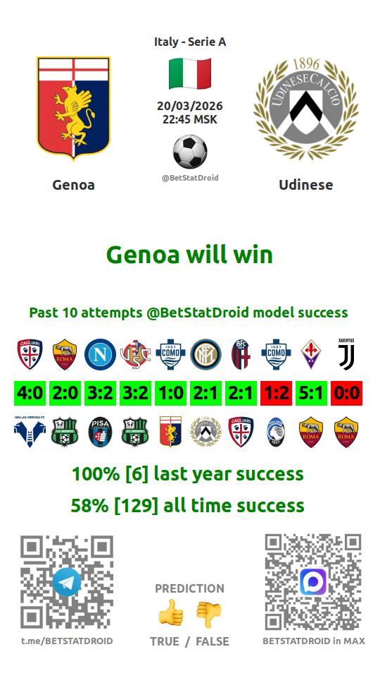 ✔ Дженоа выигрывает в 4 матчах