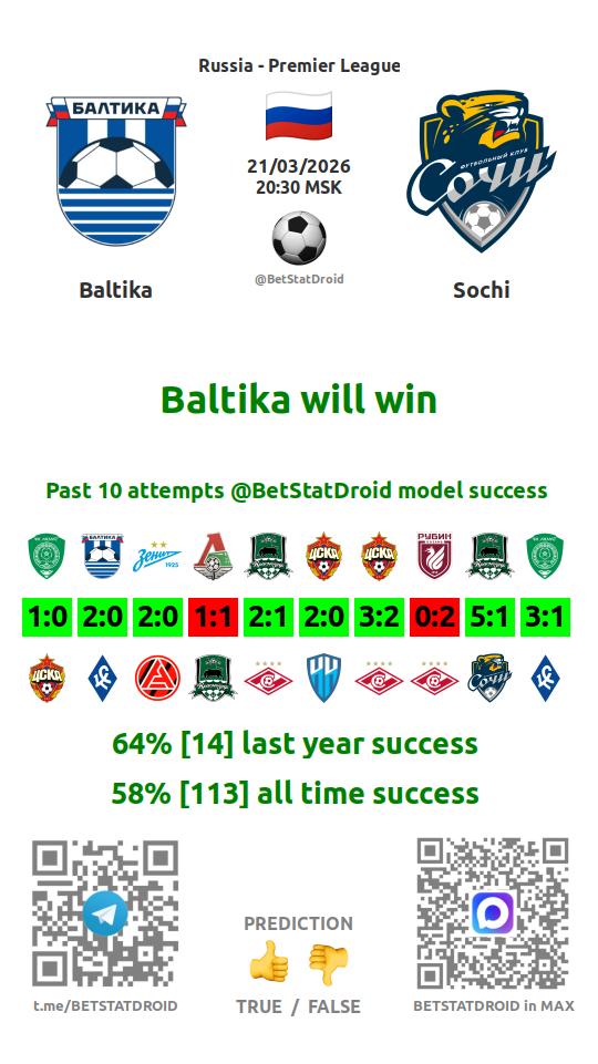 ✔ Балтика пропускает меньше 2,5 голов в 21 матчах