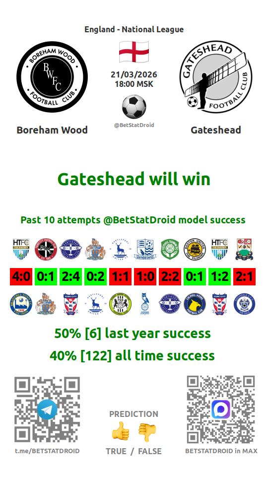 ✔ Гейтсхед забивает меньше 2,5 голов в 12 матчах