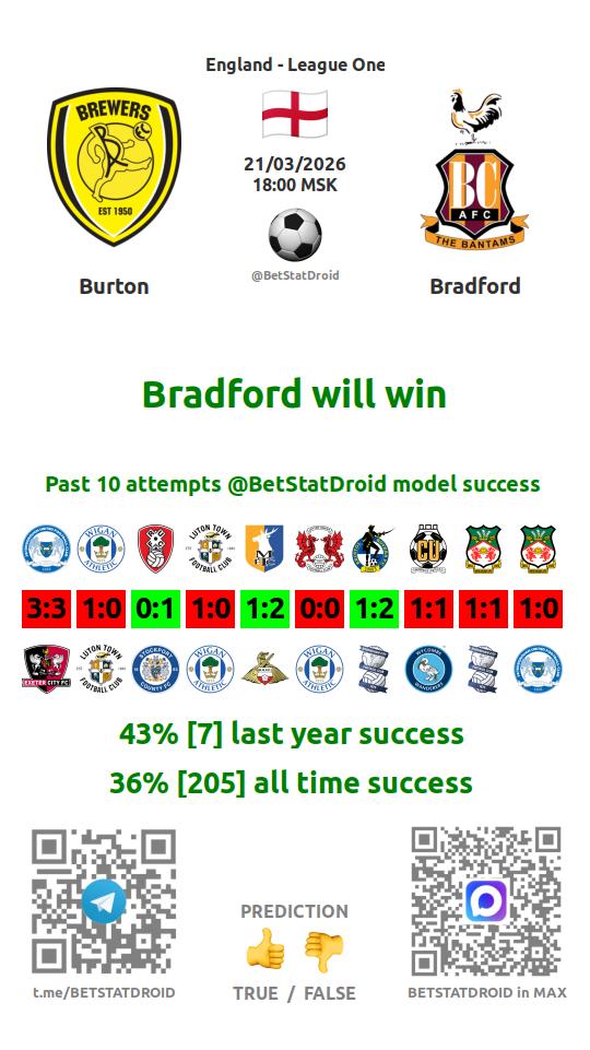 ✔ Брэдфорд забивает меньше 2,5 голов в 29 матчах