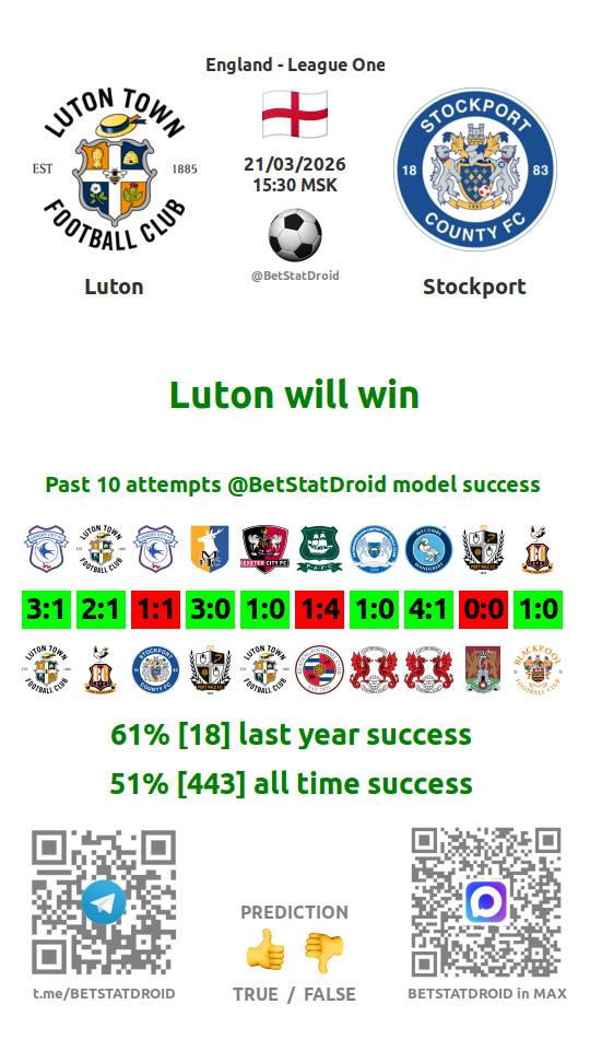 ✔ Лутон забивает больше 1,5 голов в 5 матчах