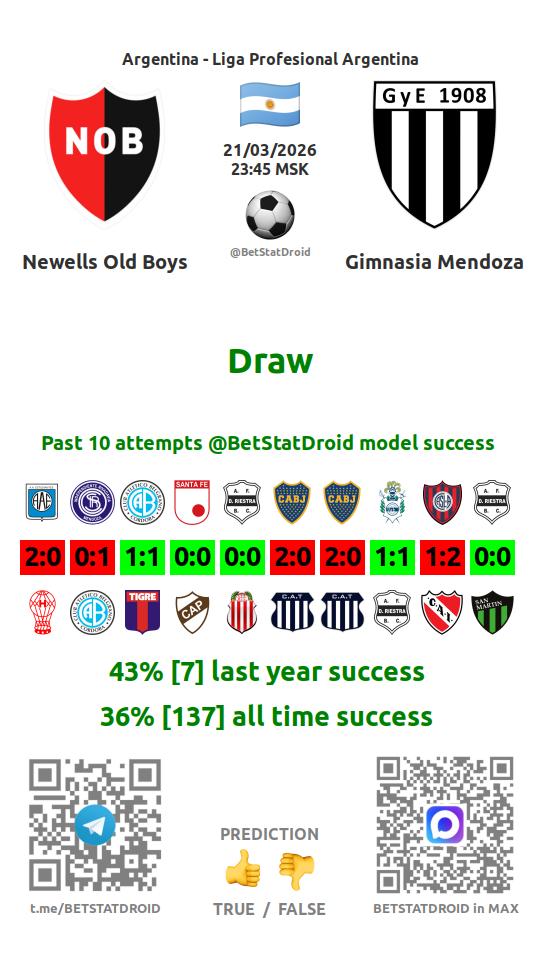 ✔ Ньюэллс Олд Бойз забивает меньше 2,5 голов в 43 матчах