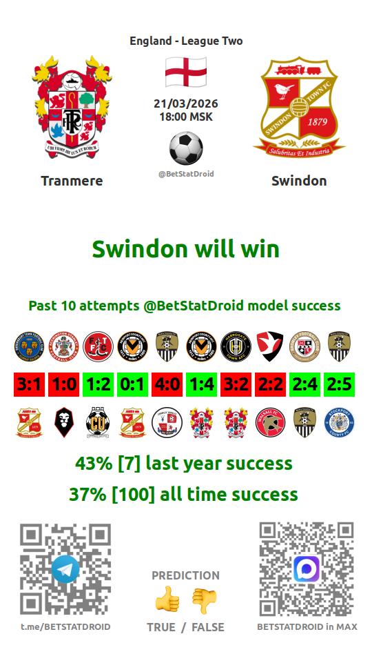✔ Суиндон забивает в 8 матчах
