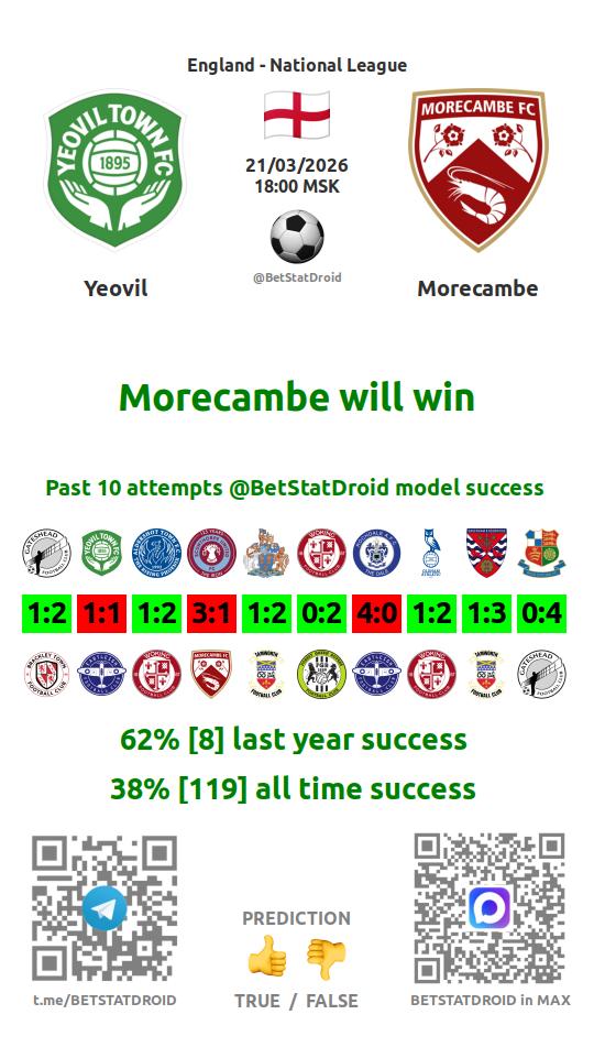 ✔ Моркэм забивает в 5 матчах