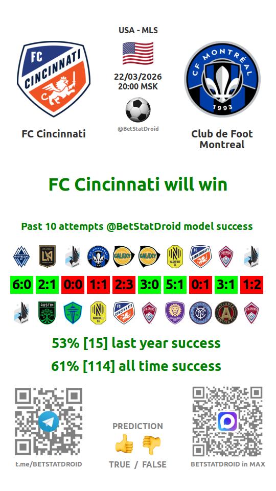 ✔ Цинциннати забивает больше 2,5 голов в 4 матчах