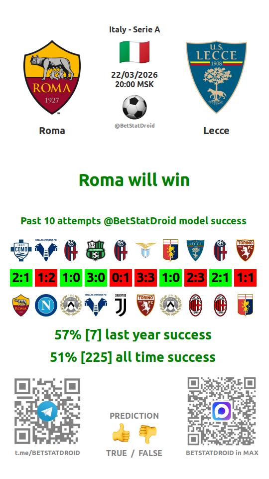 ✔ Рома выигрывает в 8 матчах