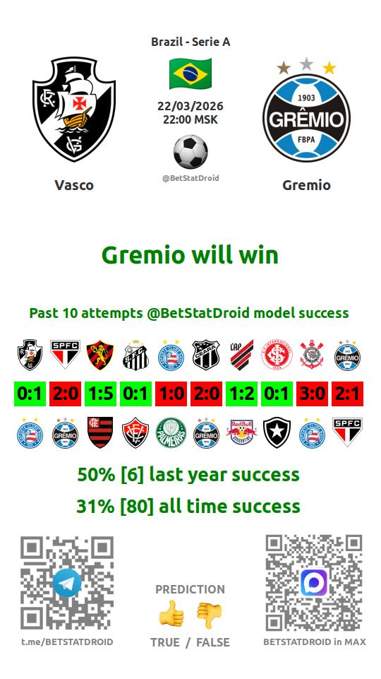 ✔ Васко да Гама забивает меньше 2,5 голов в 20 матчах