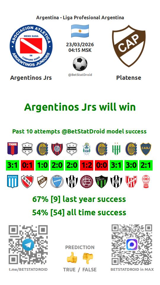 ✔ Платенсе забивает меньше 2,5 голов в 66 матчах