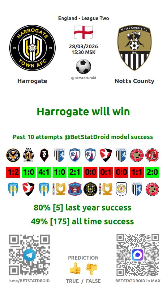 ✔ Хэррогит забивает меньше 2,5 голов в 18 матчах