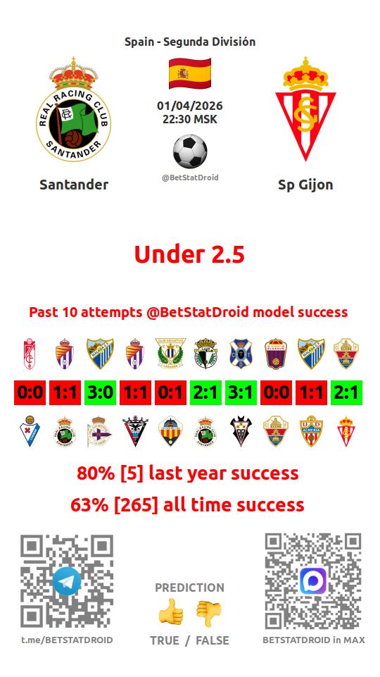 ✔ Спортинг Хихон забивает меньше 2,5 голов в 9 матчах