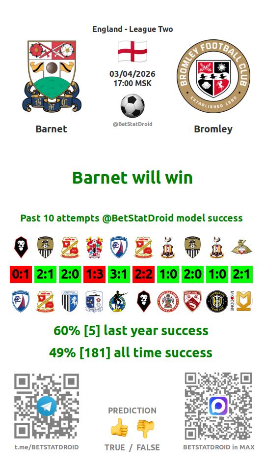 ✔ Барнет забивает меньше 1,5 голов в 7 матчах