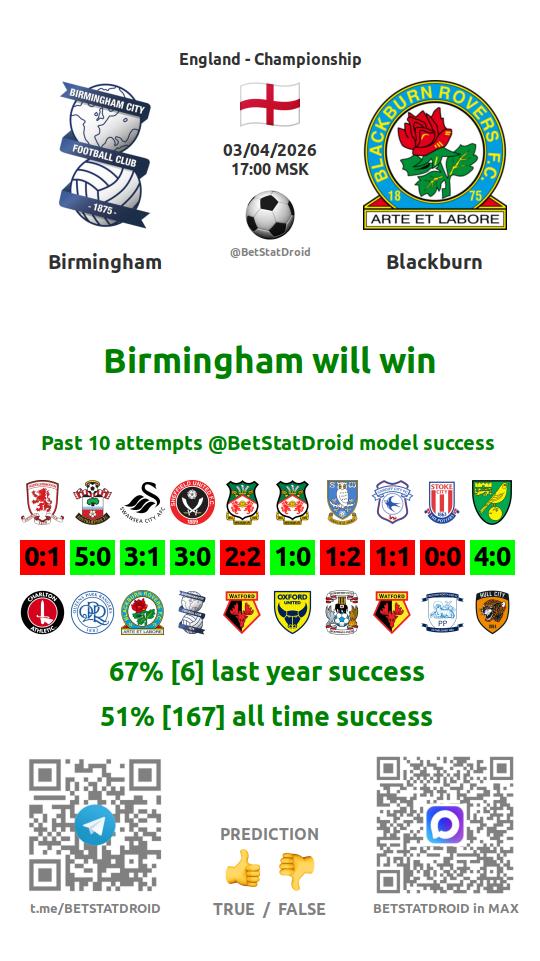 ✔ Бирмингем забивает меньше 1,5 голов в 6 матчах