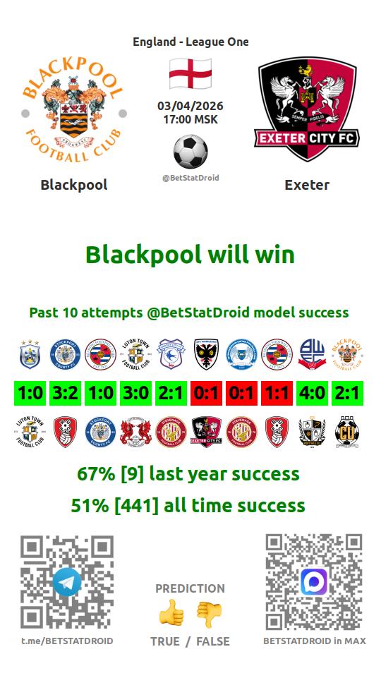 ✔ Блэкпул забивает в 4 матчах