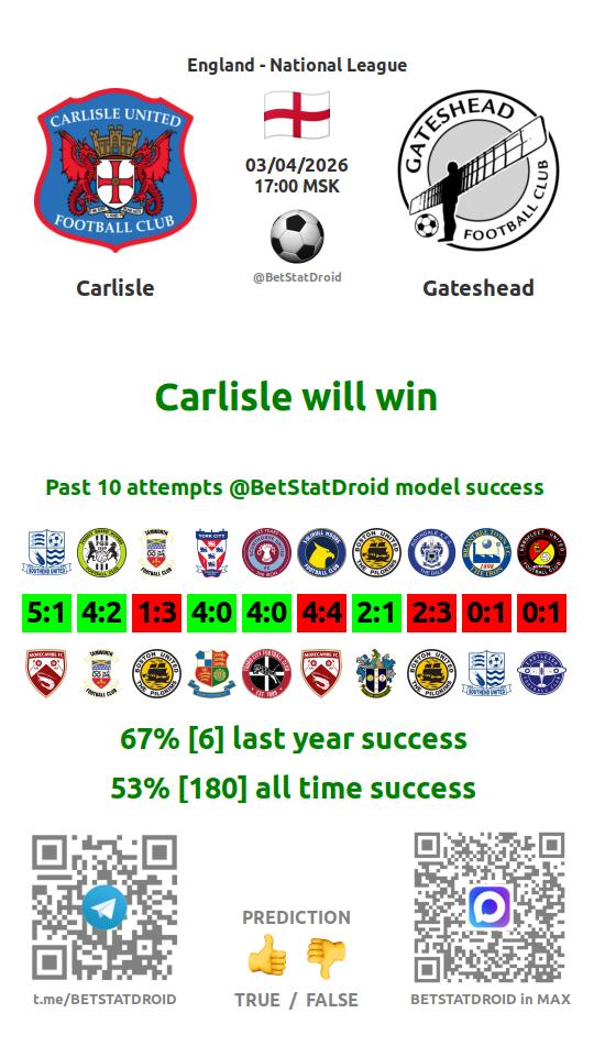 ✔ Карлайл Юнайтед забивает больше 1,5 голов в 5 матчах