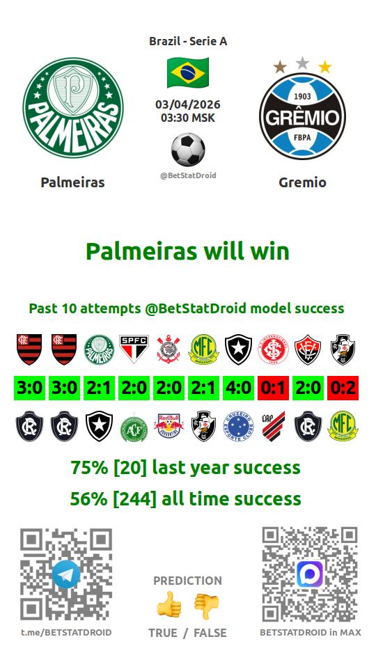 ✔ Палмейрас выигрывает в 4 матчах