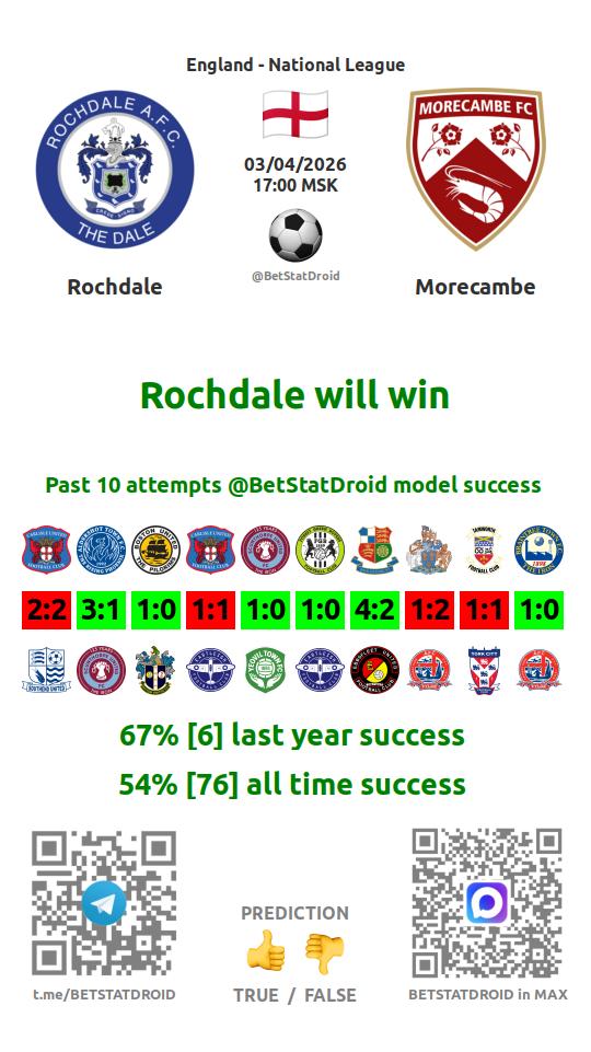 ✔ Рочдейл выигрывает в 4 матчах