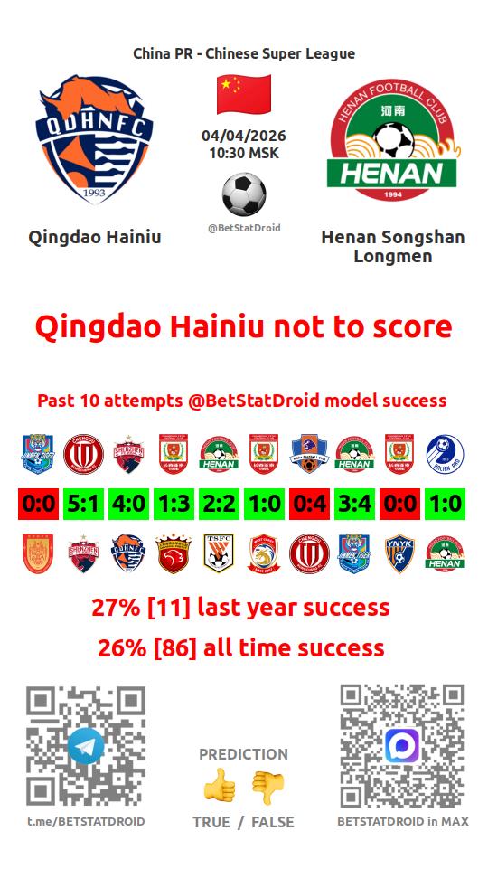 ✔ Хэнань забивает в 4 матчах