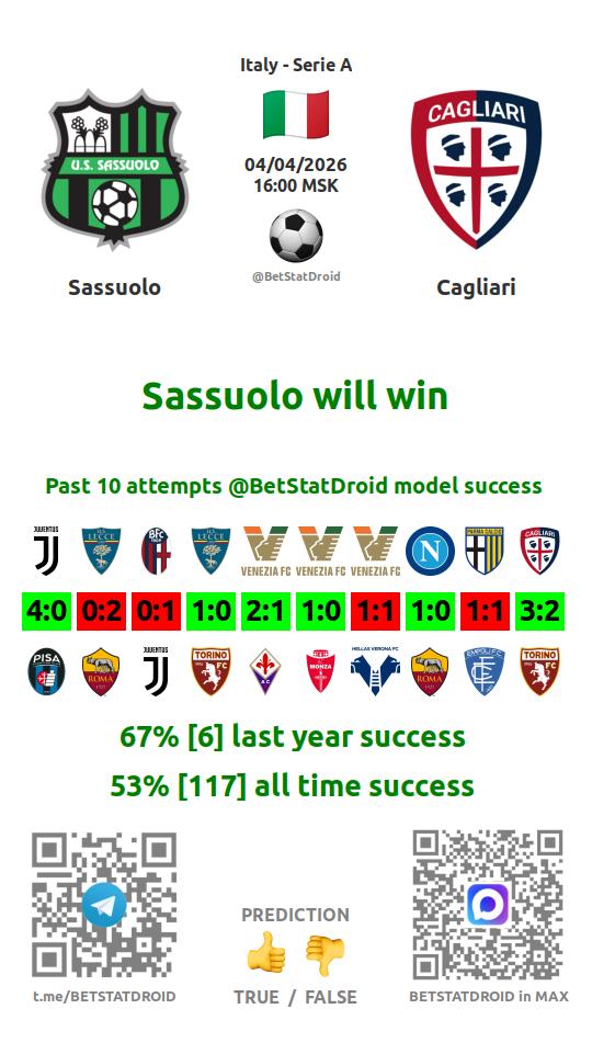 ✔ Сассуоло не играет вничью в 6 матчах