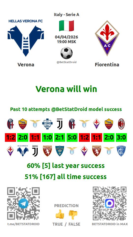 ✔ Верона забивает меньше 2,5 голов в 13 матчах