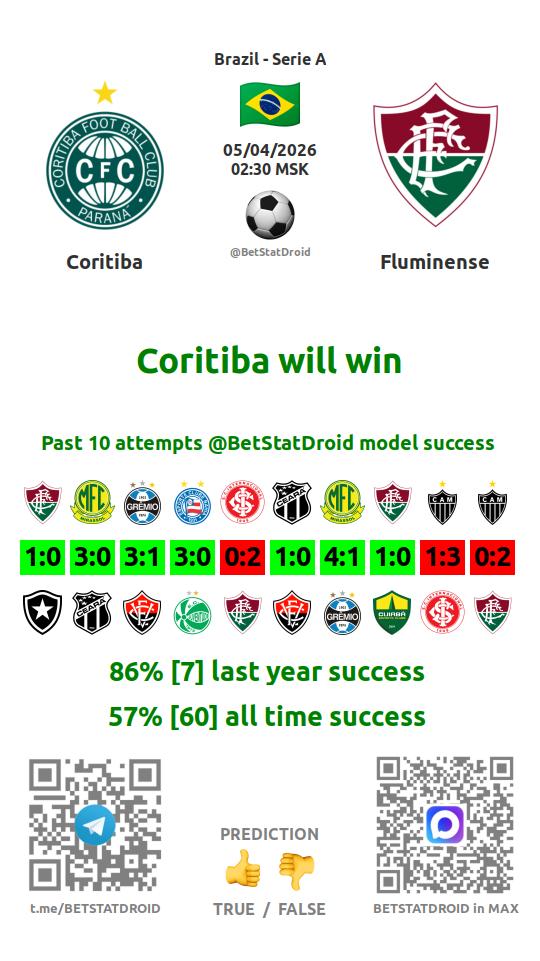 ✔ Куритиба забивает меньше 1,5 голов в 11 матчах