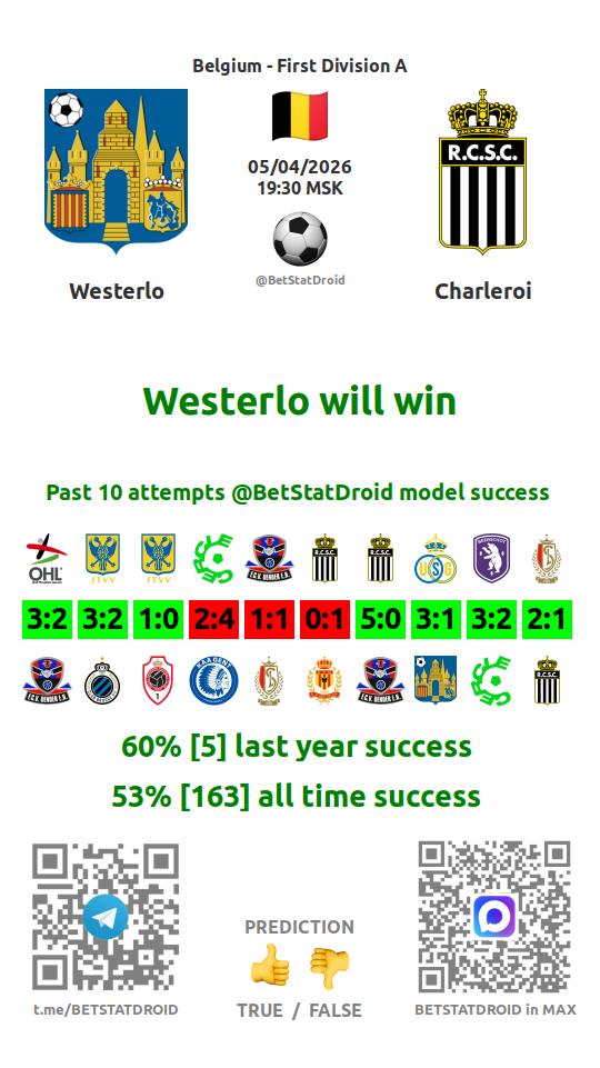 ✔ Вестерло забивает меньше 2,5 голов в 13 матчах