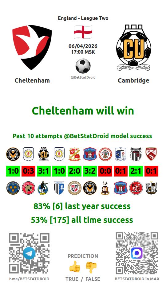 ✔ Кембридж забивает меньше 1,5 голов в 6 матчах